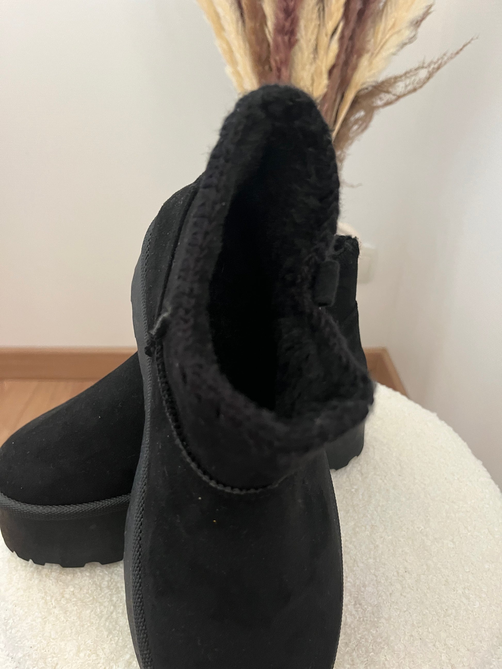Bottine noir semelle compensées fourré à l’intérieur très chaude .