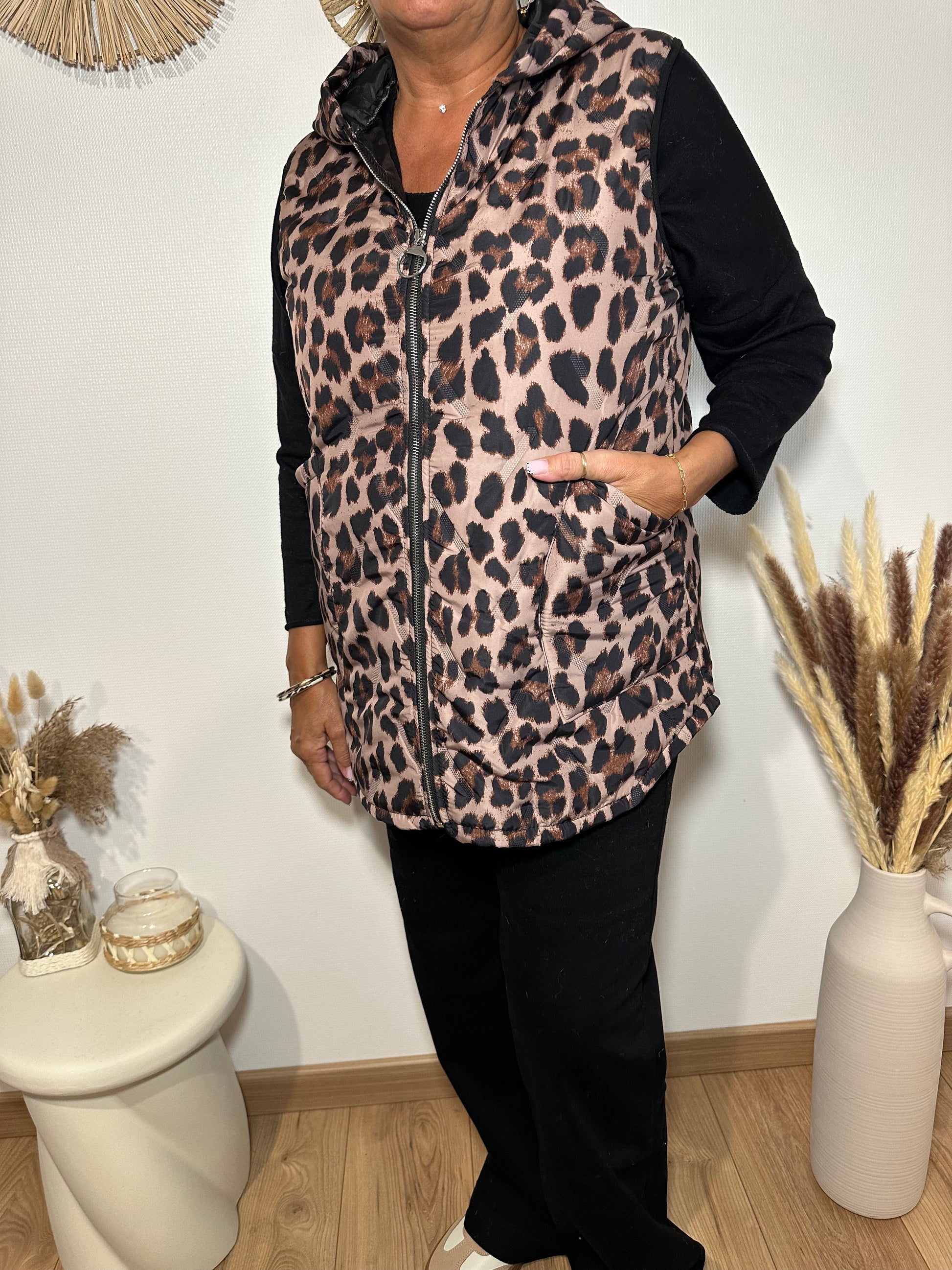 Doudoune sans manche motif léopard 2 poches avec capuche fermeture éclair taille unique convient du 38 au 44