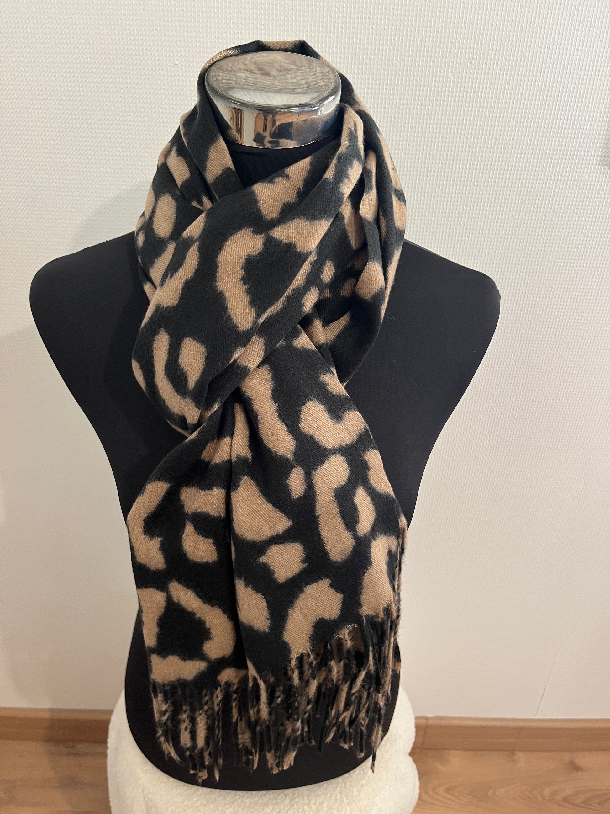 Écharpe cachemire motifs léopard douce et chaude colorie noir et crème