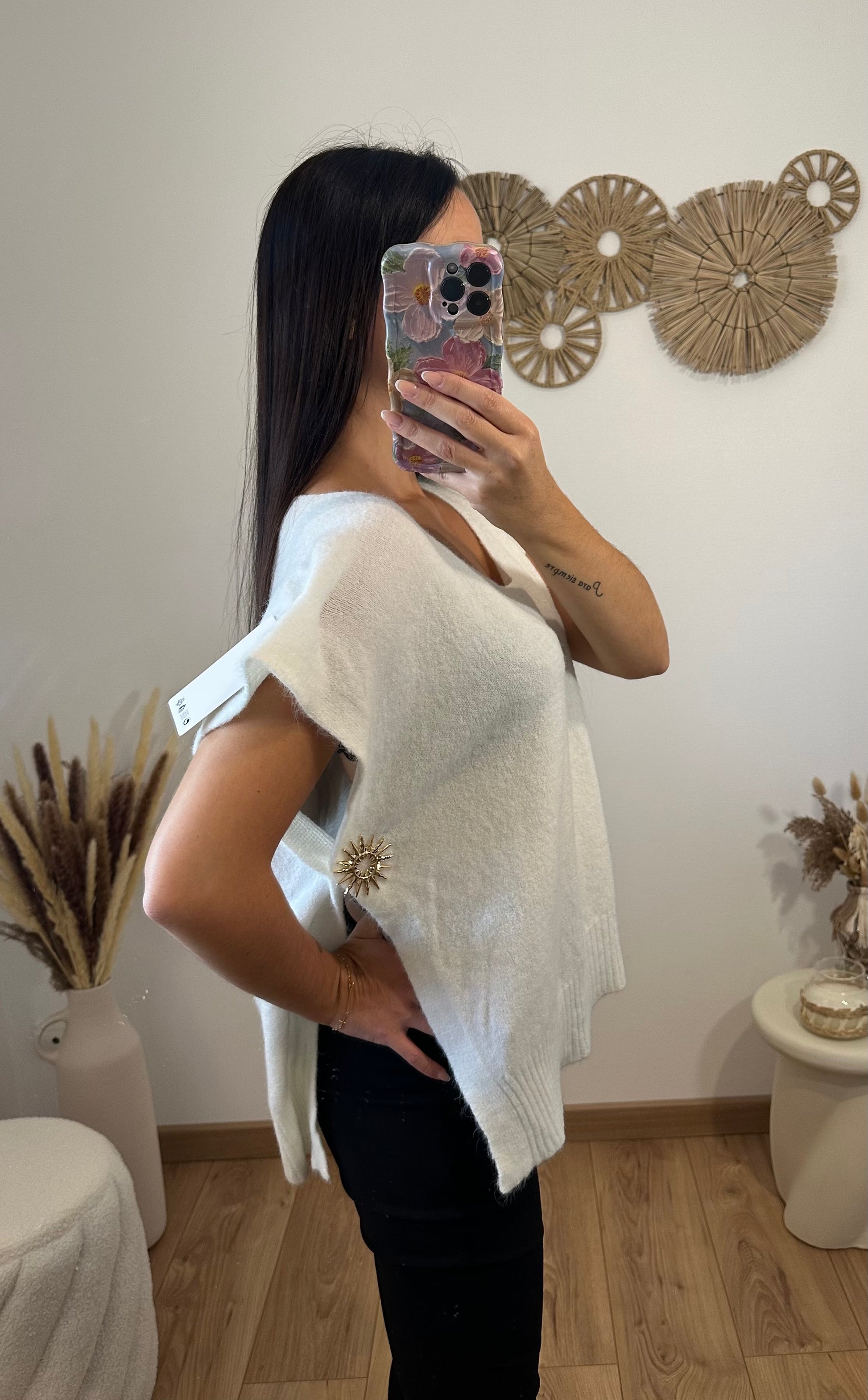 Pull sans manche doux et chaud motifs broches soleil amovibles taille unique convient du 36 au 44