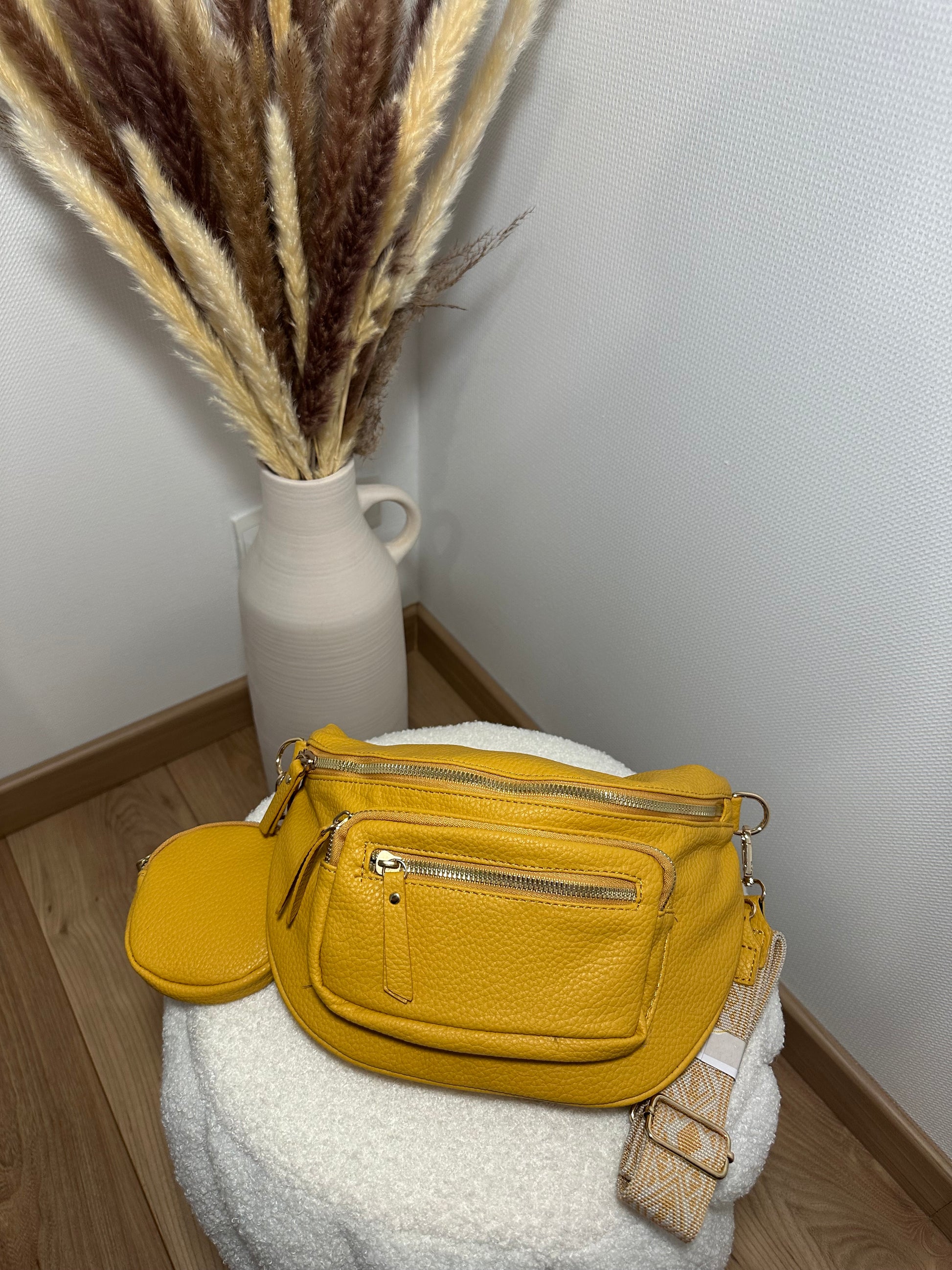 Sac banane jaune moutarde avec bandoulière et petit porte monnaie inclus