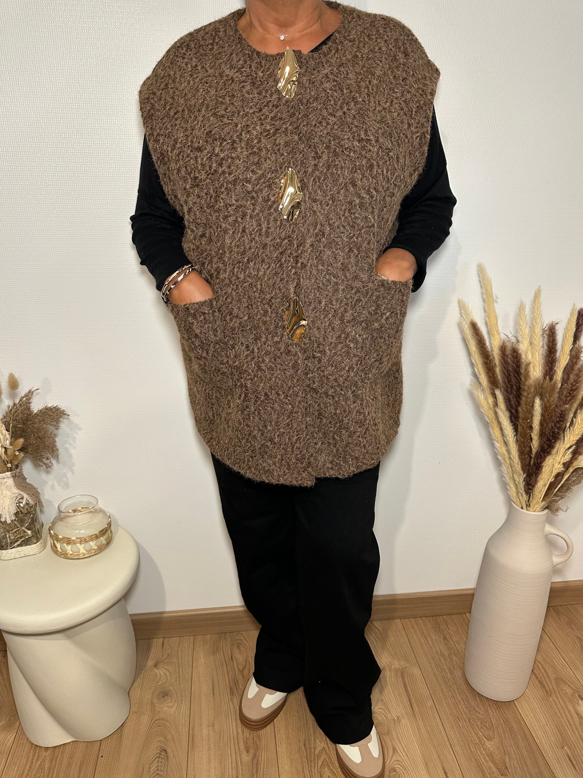 Veste longue feutrine 2 poches fermeture broches dorées taille unique convient du 42 au 50